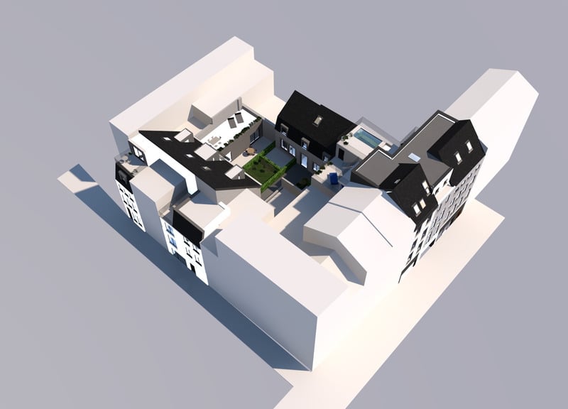 Transformation urbaine d’un ensemble de bâtiments en 12 unités de logement.