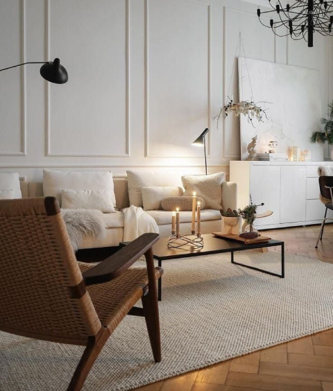 Teintes de blanc, bois clairs, beaucoup de lumière